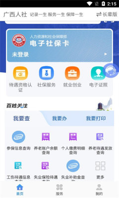 广西人社养老认证平台是一款专为广西地区居民设计的便民服务应用,它整合了养老认证、社保信息查询、人脸识别验证和办卡进度跟踪等核心服务,帮助用户高效处理日常社保事务。通过智能化的操作流程,轻松完成认证步骤,实时获取个人社保数据,享受便捷的掌上政务体验,大大节省了时间和精力。