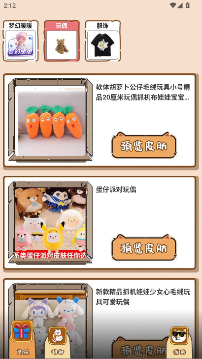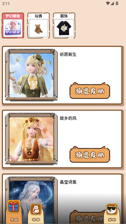 软件将内容划分为皮肤、玩偶、服饰等多个独立板块,每个板块运营逻辑一致但内容专精,满足用户差异化的装扮需求。